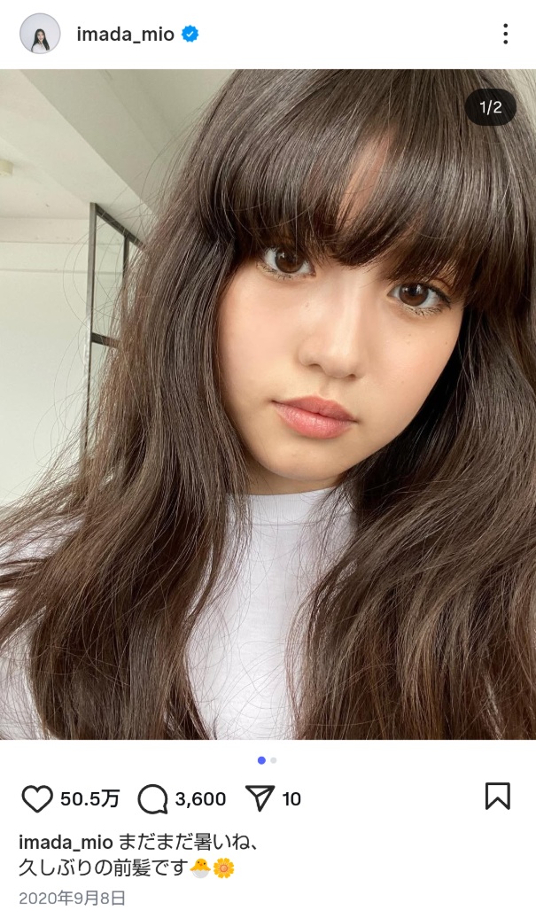 前髪が魅力的な2020年の今田美桜(本人のインスタグラムから)