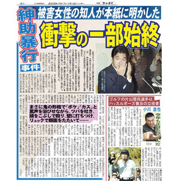 「紳助暴行事件 衝撃の一部始終」(2005年1月12日付け紙面)/(C)日刊ゲンダイ