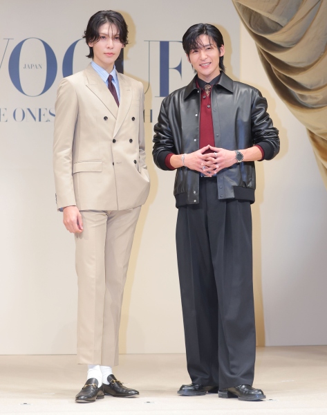 脚の長さが際立つラウール(左)と目黒蓮(C)日刊ゲンダイ