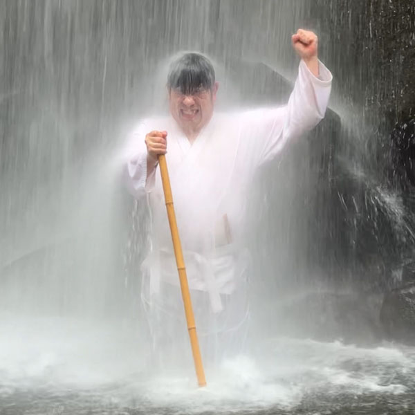 滝に打たれながら「プッシュ!プッシュ!」/(提供写真)
