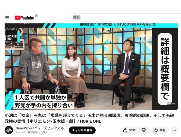 ニューズピックスの配信番組「HORIE ONE」(YouTubeから)