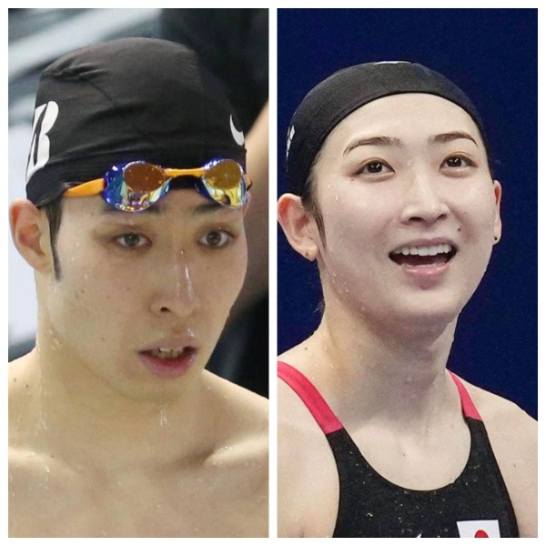 池江璃花子(右)と萩野公介氏(C)日刊ゲンダイ
