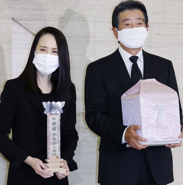 2021年、沙也加さんの火葬のあと沈痛な面持ちで取材に応じた神田正輝と松田聖子(C)日刊ゲンダイ