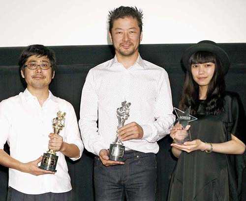左から熊切監督、浅野忠信、二階堂ふみ/(C)日刊ゲンダイ
