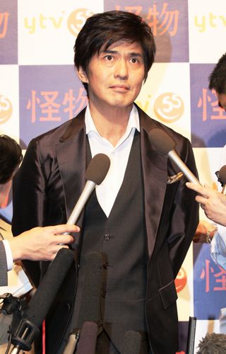 三國連太郎が死去し、囲み取材に応じる息子の佐藤浩市(C)日刊ゲンダイ