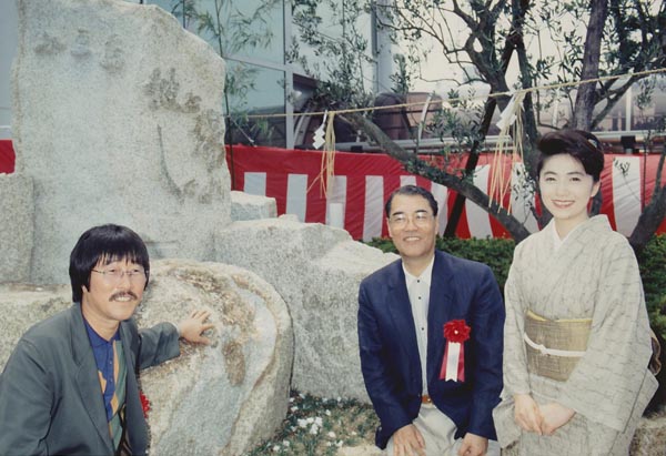 作詞家の吉岡治さん(央)、作曲家の岡千秋さんと(提供写真)