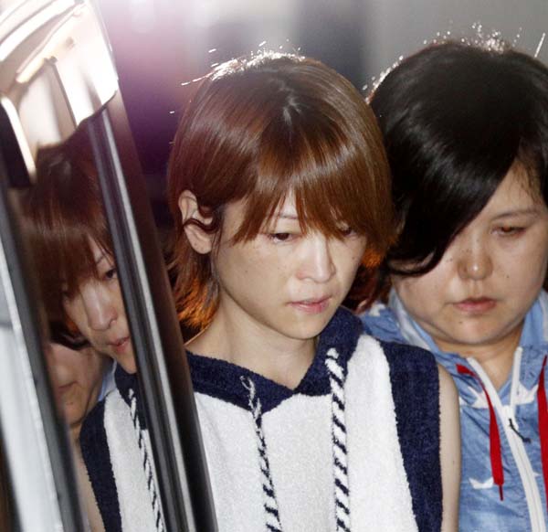 警視庁中野署を出る吉澤ひとみ容疑者(C)共同通信社