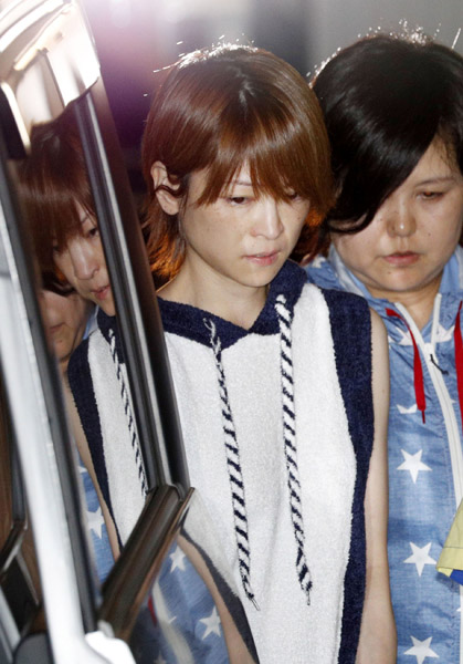 警視庁中野署を出る吉澤ひとみ容疑者(C)共同通信社