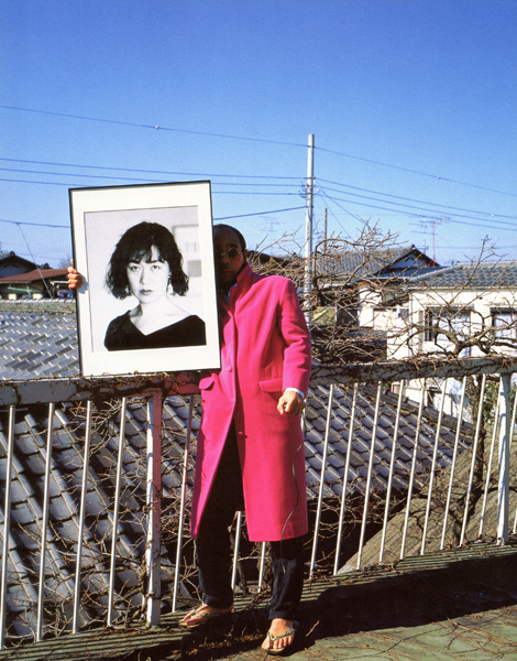 妻・陽子の1周忌、バルコニーで彼女の赤いコートを着て遺影とともに撮影(「色景」より 1991年撮影)/(提供写真)