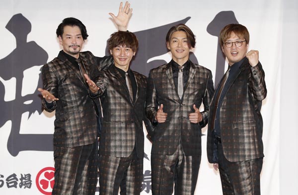 「純烈」リーダー酒井一圭さん(右)と後上翔太さん(左から2人目)/(C)日刊ゲンダイ