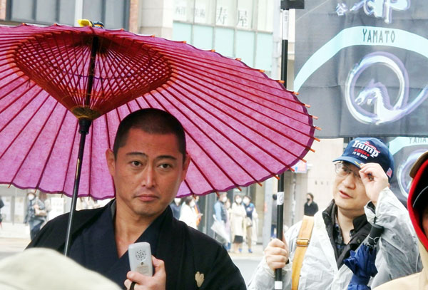 沿道から野次る人に詰め寄り制止される中野道明氏/(撮影)藤倉善郎