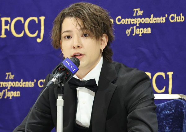 会見するカウアン・オカモト氏(C)日刊ゲンダイ