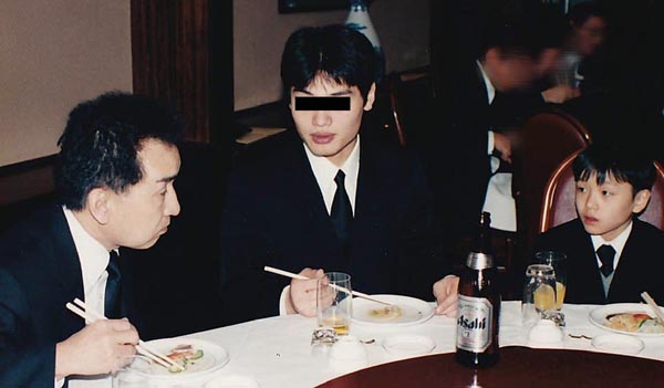 葬儀でジャニー氏(左)と会食(右端が次男の有吉氏)/(本人提供)