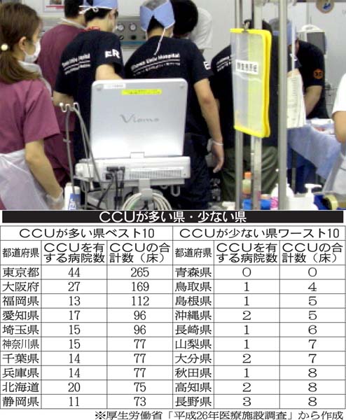 心臓病集中治療室の地域格差 首都圏に全国の3割が集中