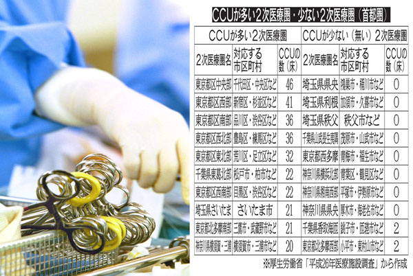 首都圏の2次医療圏CCU数 都下の西多摩はゼロ