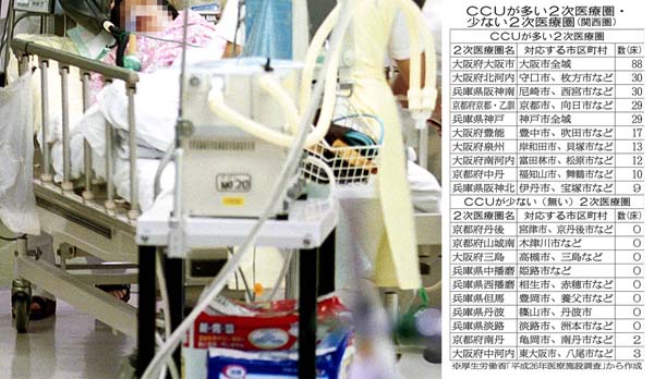 冠疾患集中治療室 関西では高槻市から寝屋川市が空白地帯