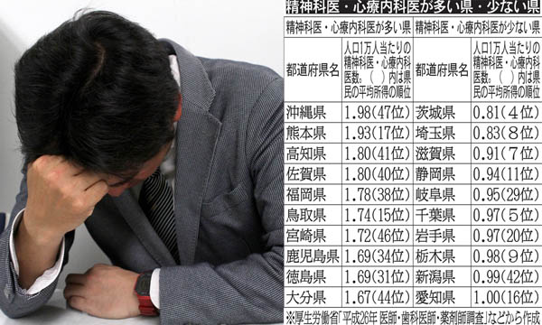 精神系医師の人数 人口1万人当たりなら沖縄県がトップ