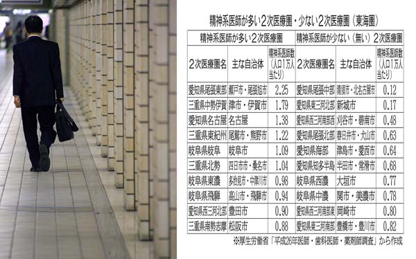 東海の精神系医師 多い2次医療圏・少ない2次医療圏