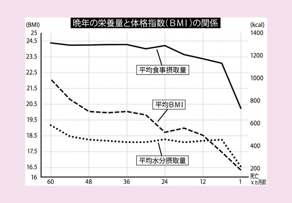 晩年の栄養量と体格指数(BMI)の関係(C)日刊ゲンダイ