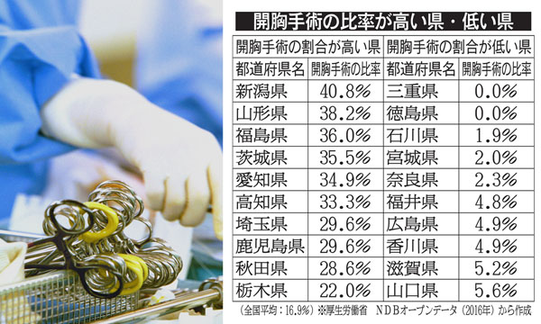 開胸手術の比率が高い県・低い県(C)日刊ゲンダイ