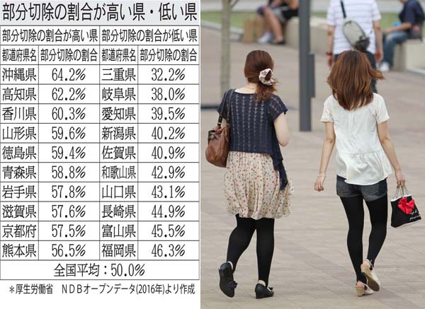 部分切除の割合が高い県・低い県(C)日刊ゲンダイ