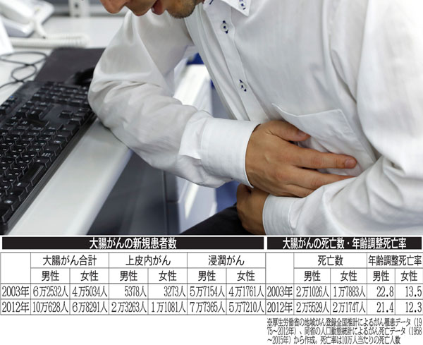 大腸がん 10年間で男女とも新規患者数増加の最大要因は?