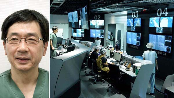カテーテルスタジオから無線指導をする三角和雄院長(C)日刊ゲンダイ