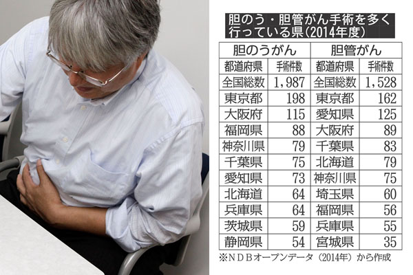 胆のう・胆管がん手術 東京は総手術数の1割を担う