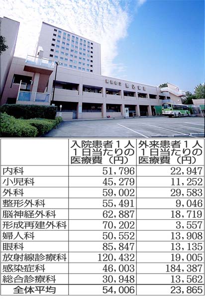都立駒込病院の医療費 1日当たりは放射線診療科が12万円でトップ