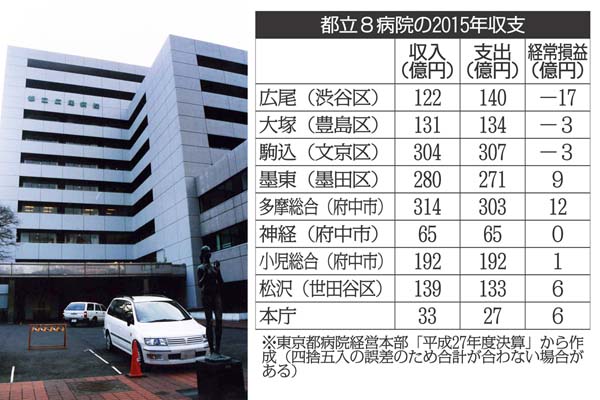 都立8病院の収支決算 28億超の補助金でも「広尾」は赤字