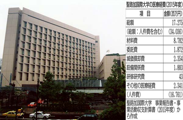 聖路加国際病院の医療経費 材料費は前年度比8億6100万円増