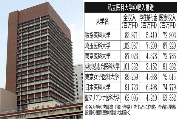 私立医科大学の全収入に占める学生納付金の比率は数%