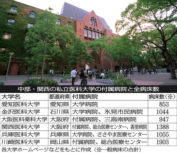 関東以外の私立医科大学 付属病院数は関東の半分