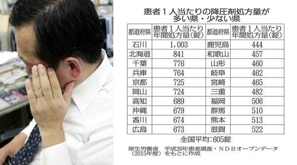 【降圧剤】処方量トップの石川県は1人年間1000錠以上