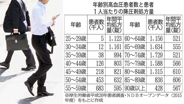 【降圧薬】若い人ほど多く飲む 20代後半は60代前半の2倍