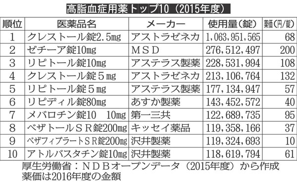 【高脂血症治療】上位100品目の使用総数は49億7019万錠