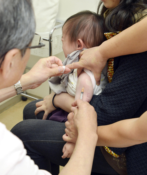 はしかの予防接種を受ける1歳児(C)共同通信社