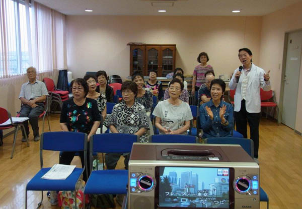「南越谷健身会クリニック」のカラオケ教室風景と同クリニックの周東寛院長(C)日刊ゲンダイ