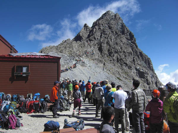 シルバーウイークには800人もの登山者が槍ケ岳に(齋藤医師提供 左の建物が診療所)
