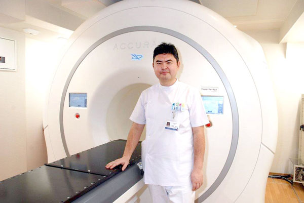 黒崎弘正部長と最新型トモセラピー(C)日刊ゲンダイ