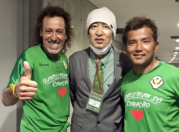 2018年5月の激励試合で(左はラモス瑠偉、右は永井秀樹)/(C)日刊ゲンダイ