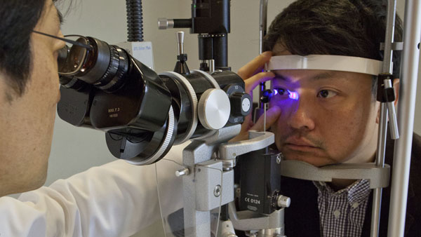 緑内障検査のようす(C)日刊ゲンダイ