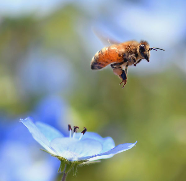 ミツバチとネモフィラ(C)日刊ゲンダイ