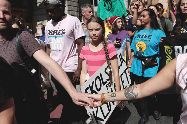 ニューヨークのデモに参加するグレタ・トゥーンベリさん(C)ロイター
