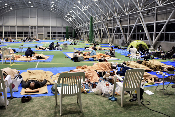 日本では台風19号の被害が…(避難所で雑魚寝をする被災者)/(C)共同通信社