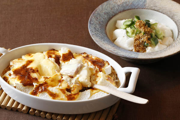 長芋のグラタン(左)ときゅうりとの叩き和え(C)日刊ゲンダイ