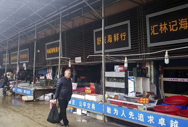 中国武漢の「海鮮市場」ではコウモリやマーモットなどの小動物も店頭に…(閉鎖されている同市場)/(C)共同通信社