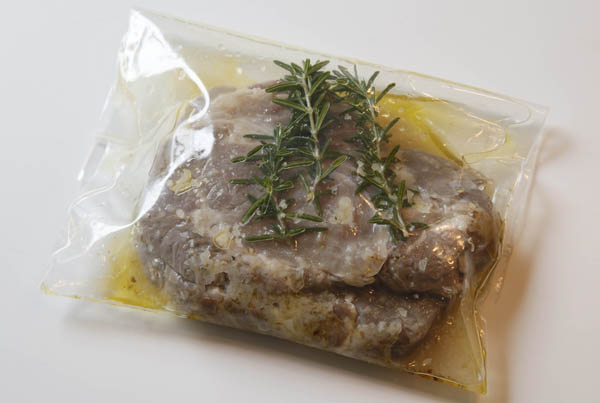 豚肩ロースの脂の部分に下包丁を入れ、30分マリネする(C)日刊ゲンダイ