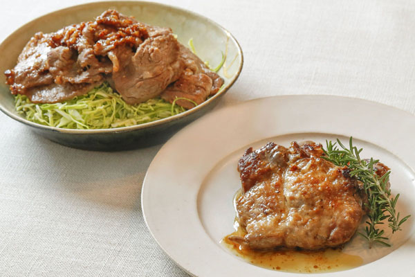 豚肉マリネソテー(手前)と生姜焼き(C)日刊ゲンダイ