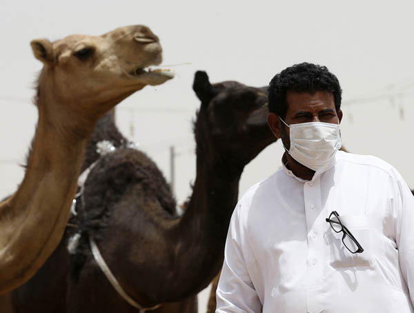 MERS(中東呼吸器症候群)は2012年に初めて確認された(サウジアラビアのラクダ市場でマスクをする男性)(C)共同通信社